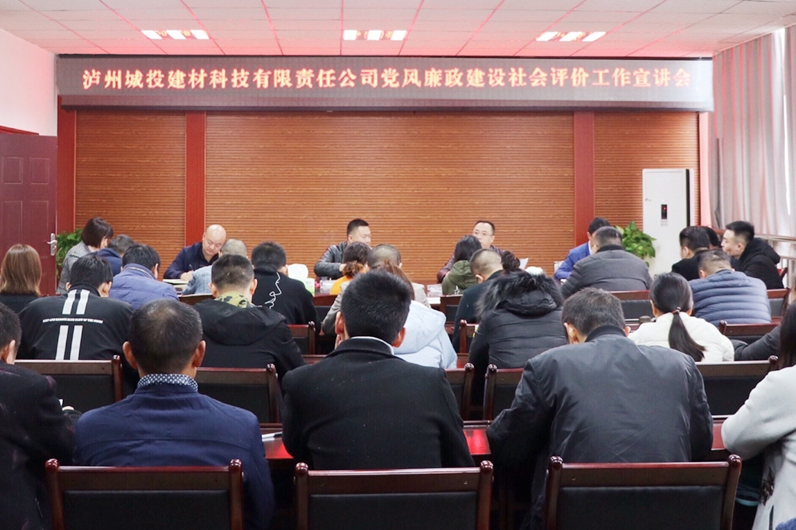 11月26日,瀘州城投集團(tuán)建材公司組織召開(kāi)了黨風(fēng)廉政建設(shè)社會(huì)評(píng)價(jià)工作宣講會(huì)。會(huì)議由公司副總經(jīng)理曾同海主持,公司全體員工參會(huì)。