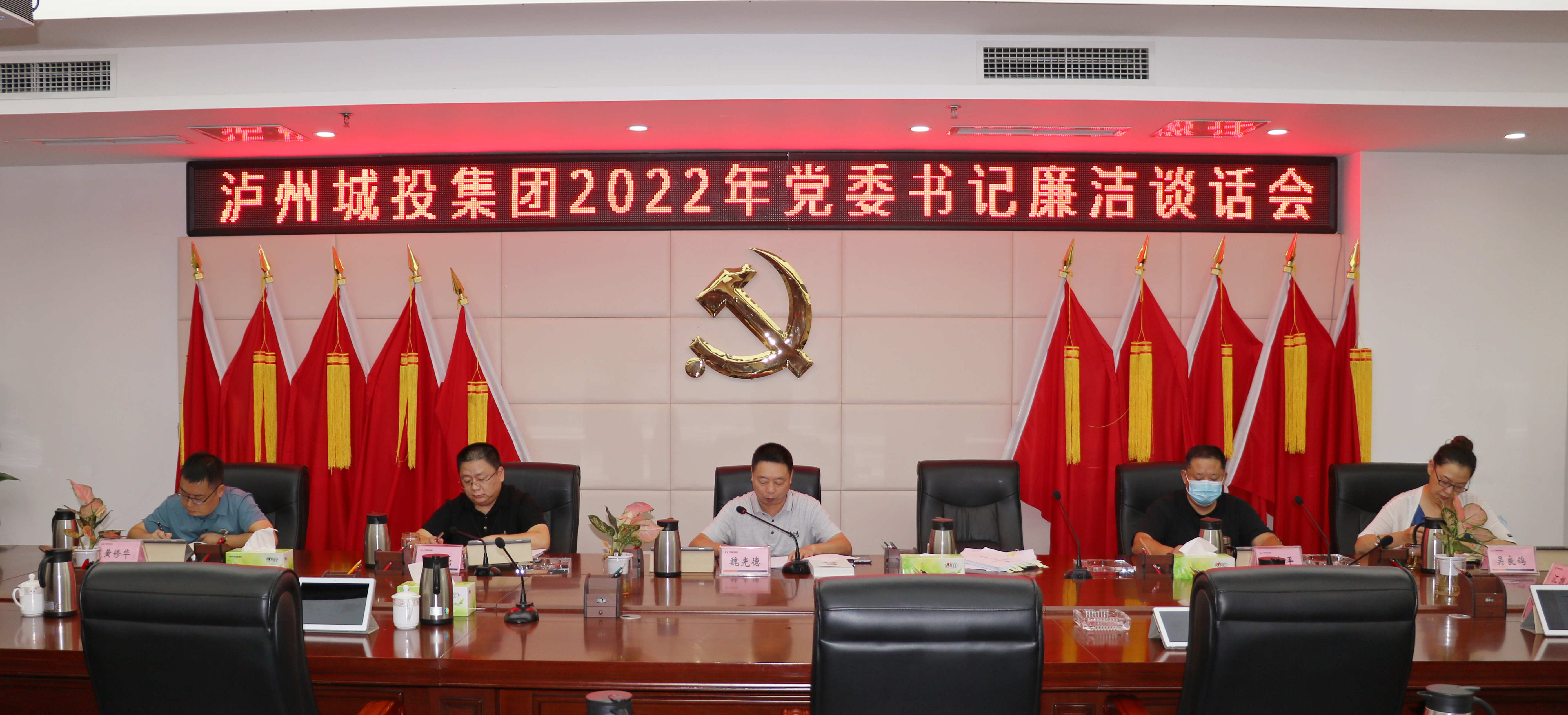 9月19日,瀘州城投集團召開2022年黨委書記廉潔談話會,集團黨委書記、董事長魏光德組織集團領導班子成員進行了集體廉潔談話。