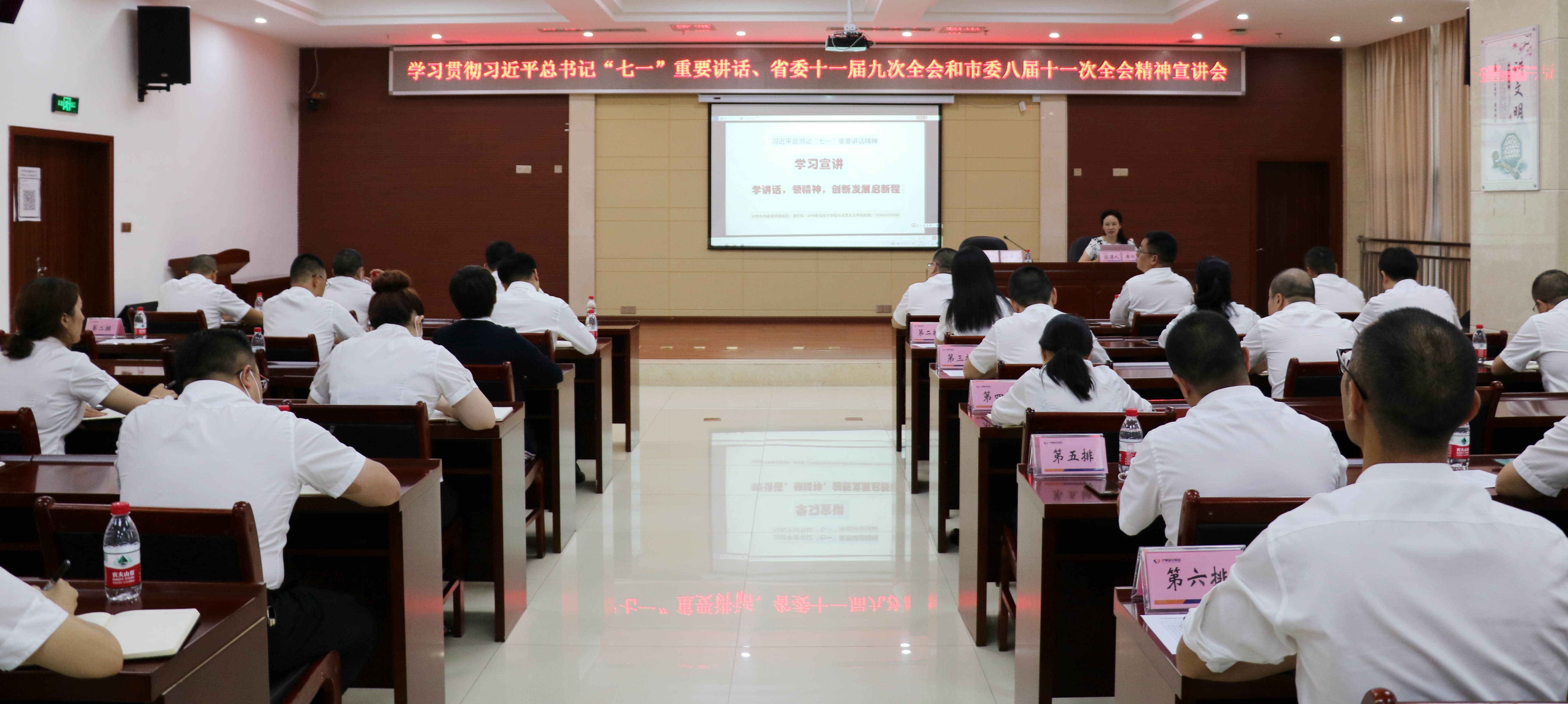 8月27日,瀘州城投集團舉行學(xué)習(xí)貫徹習(xí)近平總書記“七一”重要講話、省委十一屆九次全會和市委八屆十一次全會精神宣講會,集團在家領(lǐng)導(dǎo)班子,各部門、各子公司負責(zé)人及部分黨員、職工代表80余人參會。