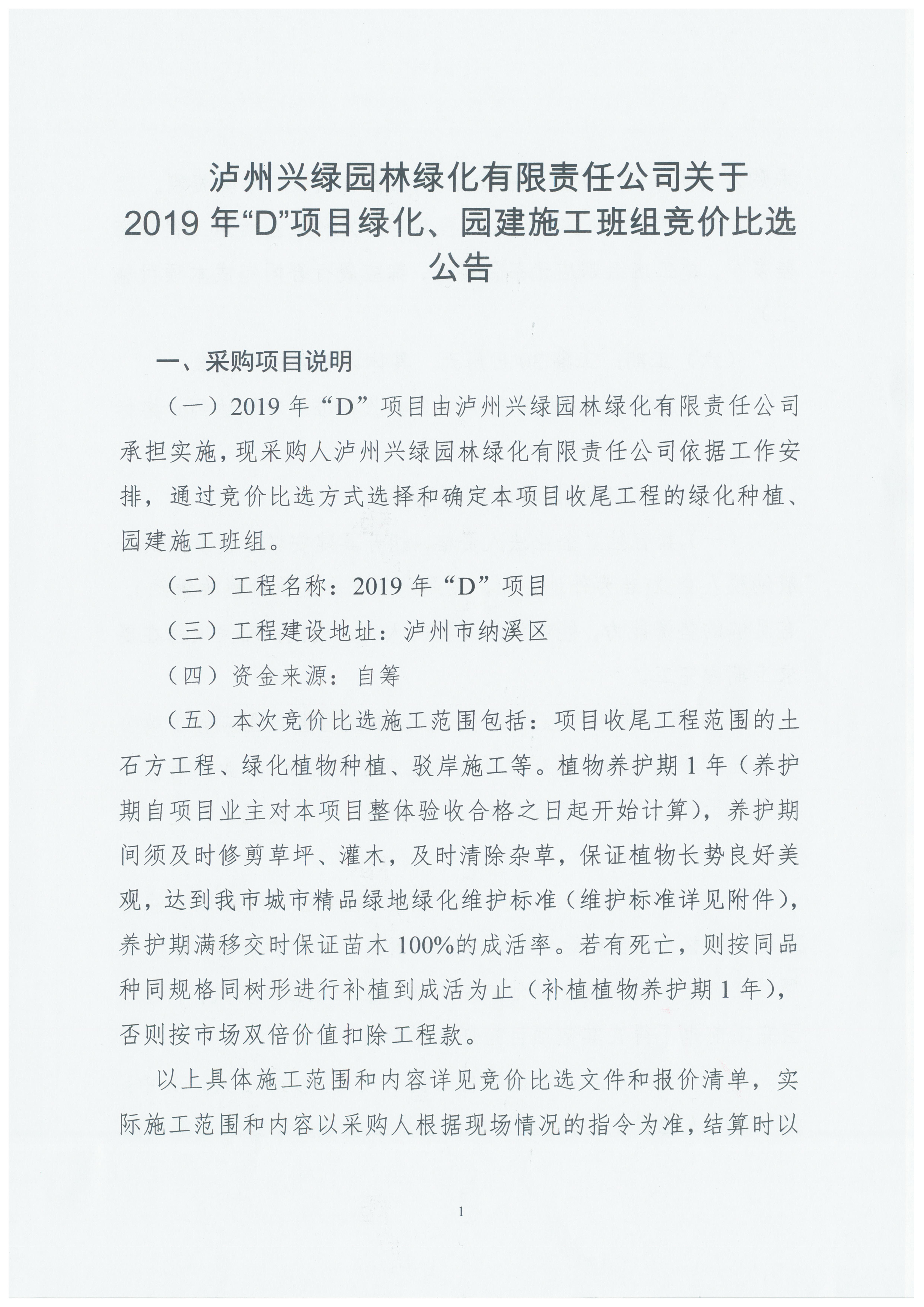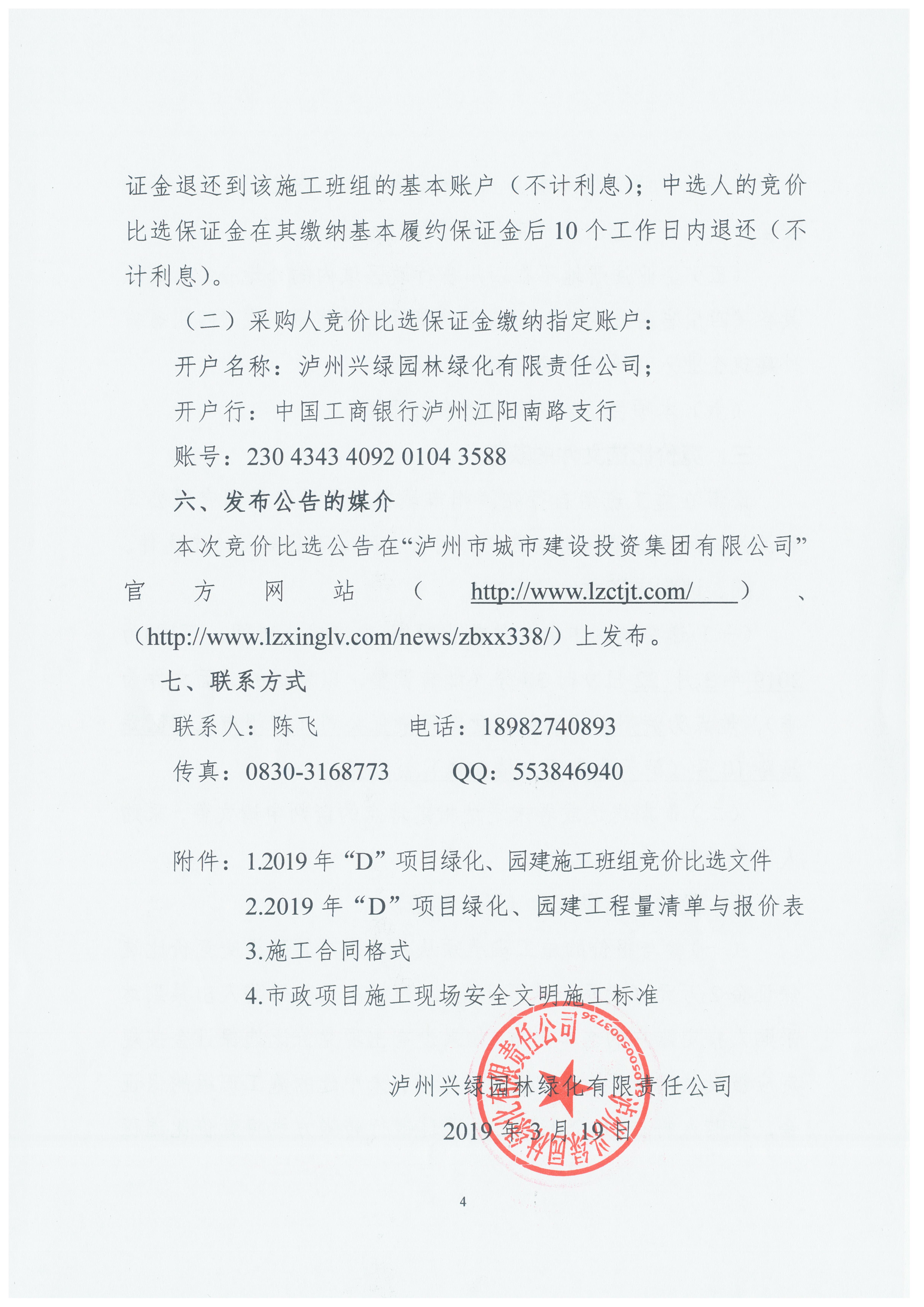 附件:1.2019年“D”項(xiàng)目綠化、園建施工班組競價比選文件 2.2019年“D”項(xiàng)目綠化、園建工程量清單與報價表 3.施工合同格式 4.市政項(xiàng)目施工現(xiàn)場安全文明施工標(biāo)準(zhǔn)
