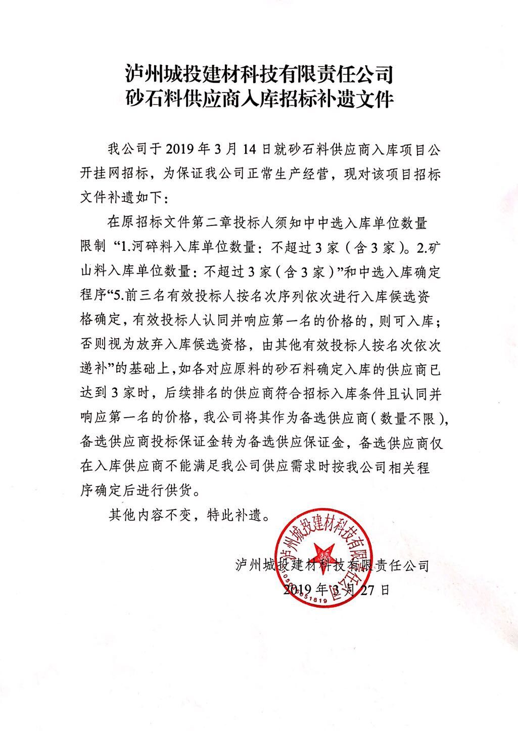 建材公司關(guān)于砂石料供應(yīng)商入庫招標(biāo)補(bǔ)遺文件