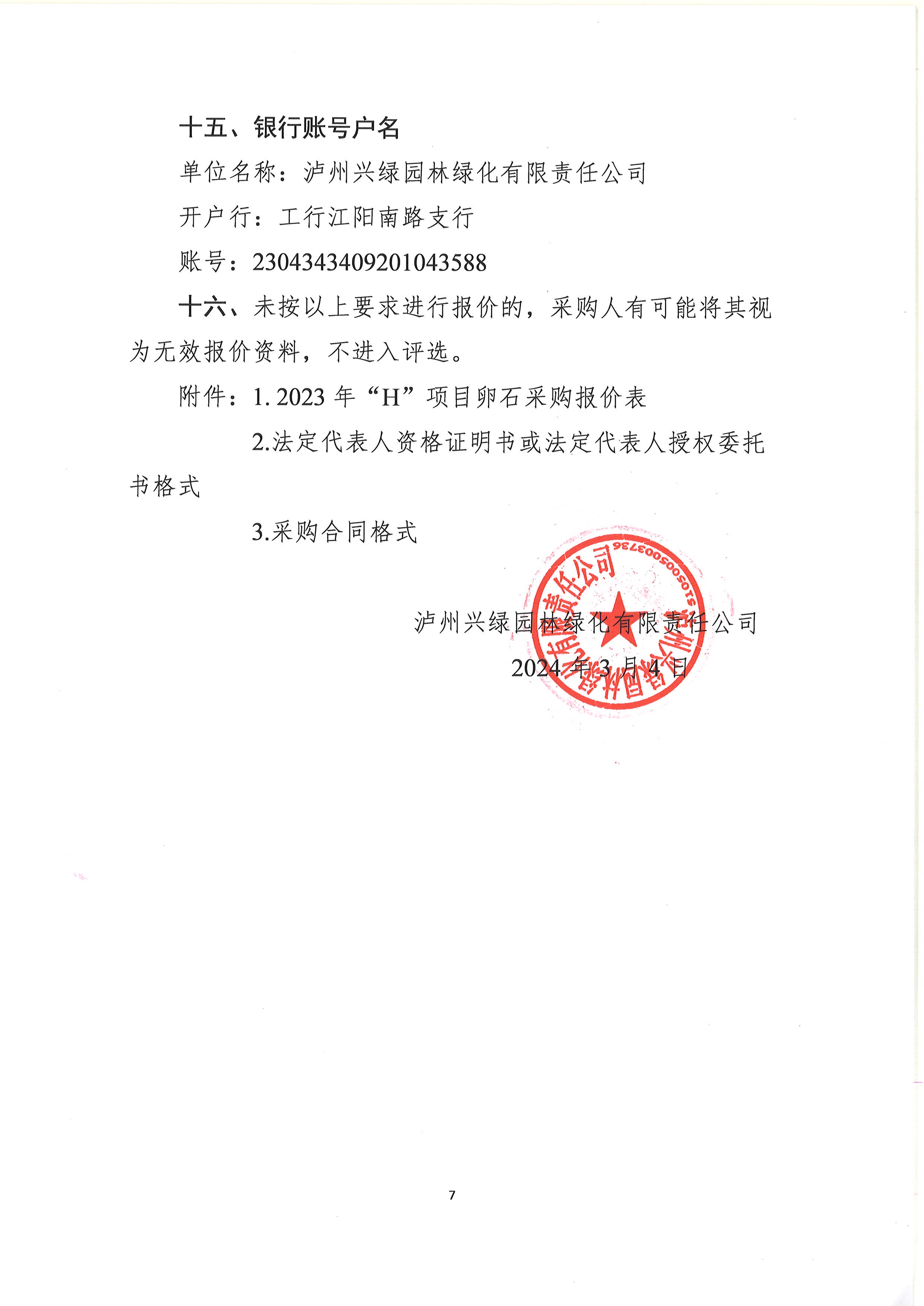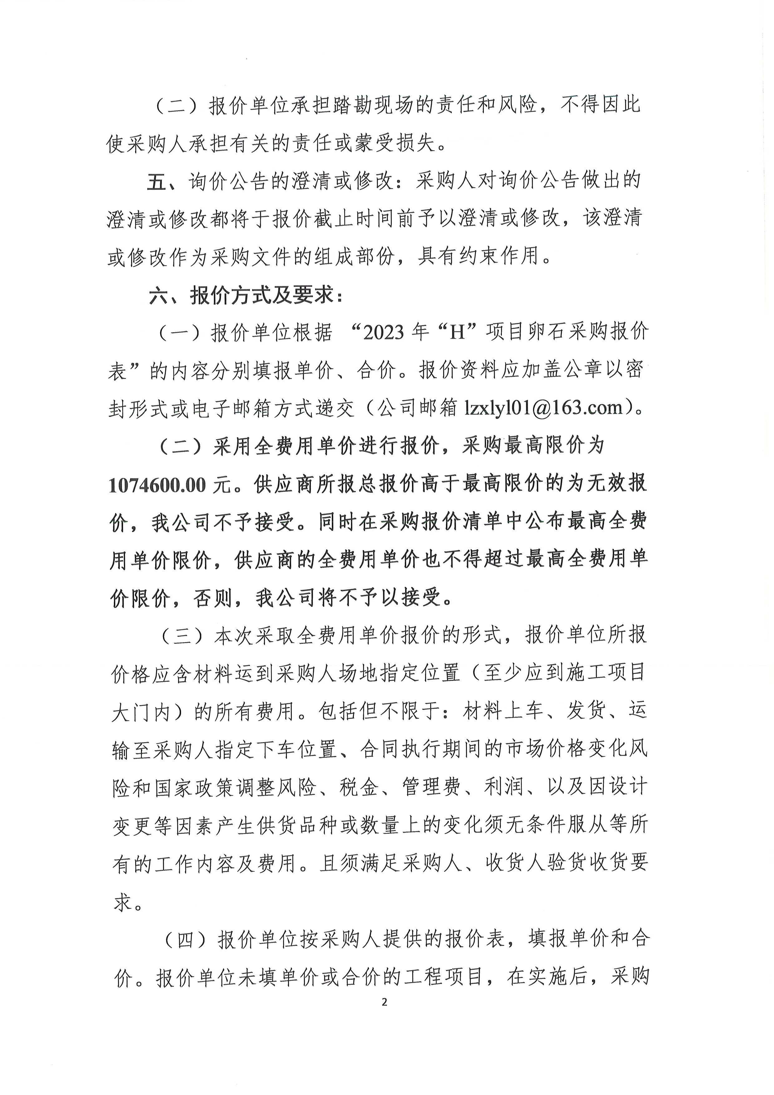 2023年“H”項目卵石采購詢價公告