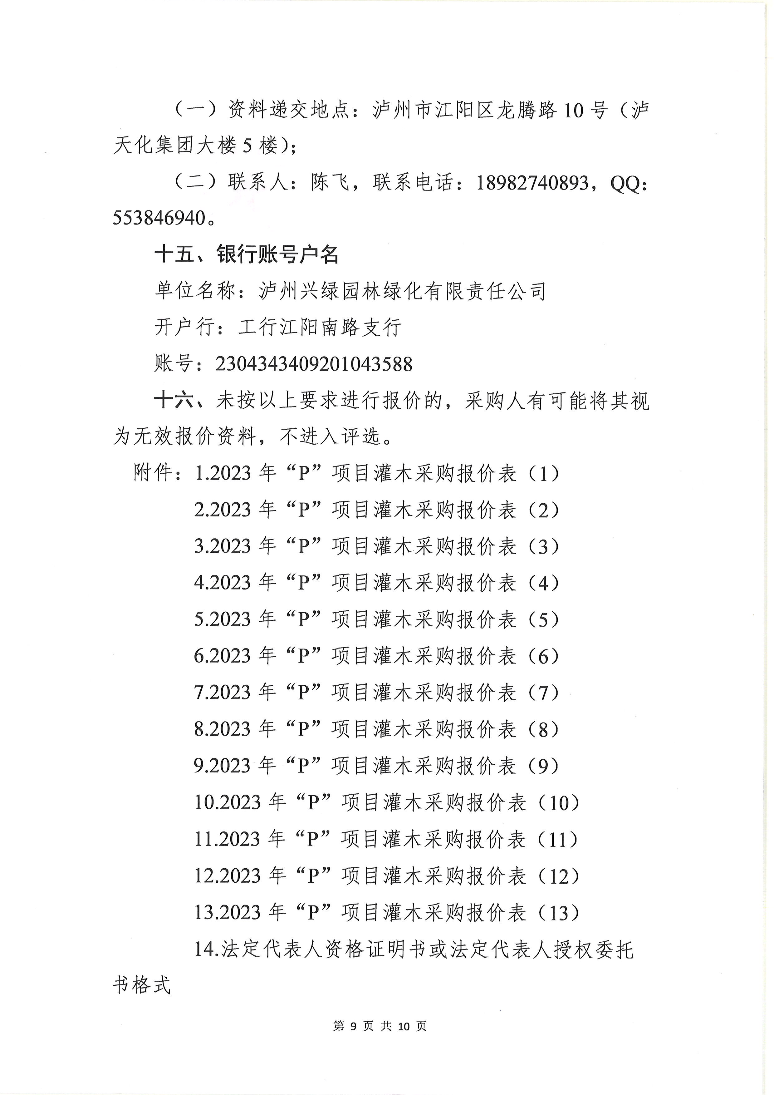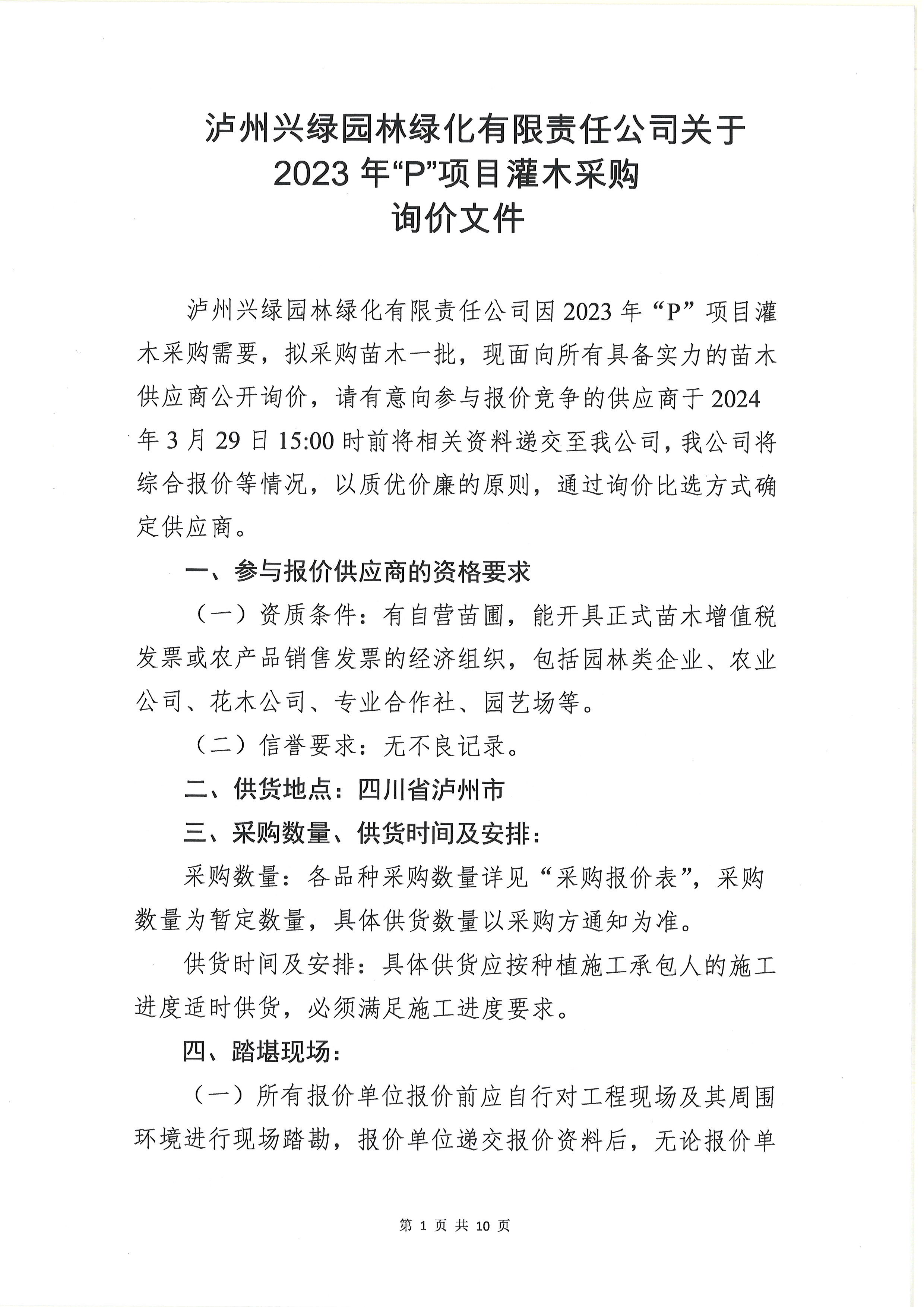 2023年“P”項(xiàng)目灌木采購(gòu)詢(xún)價(jià)文件