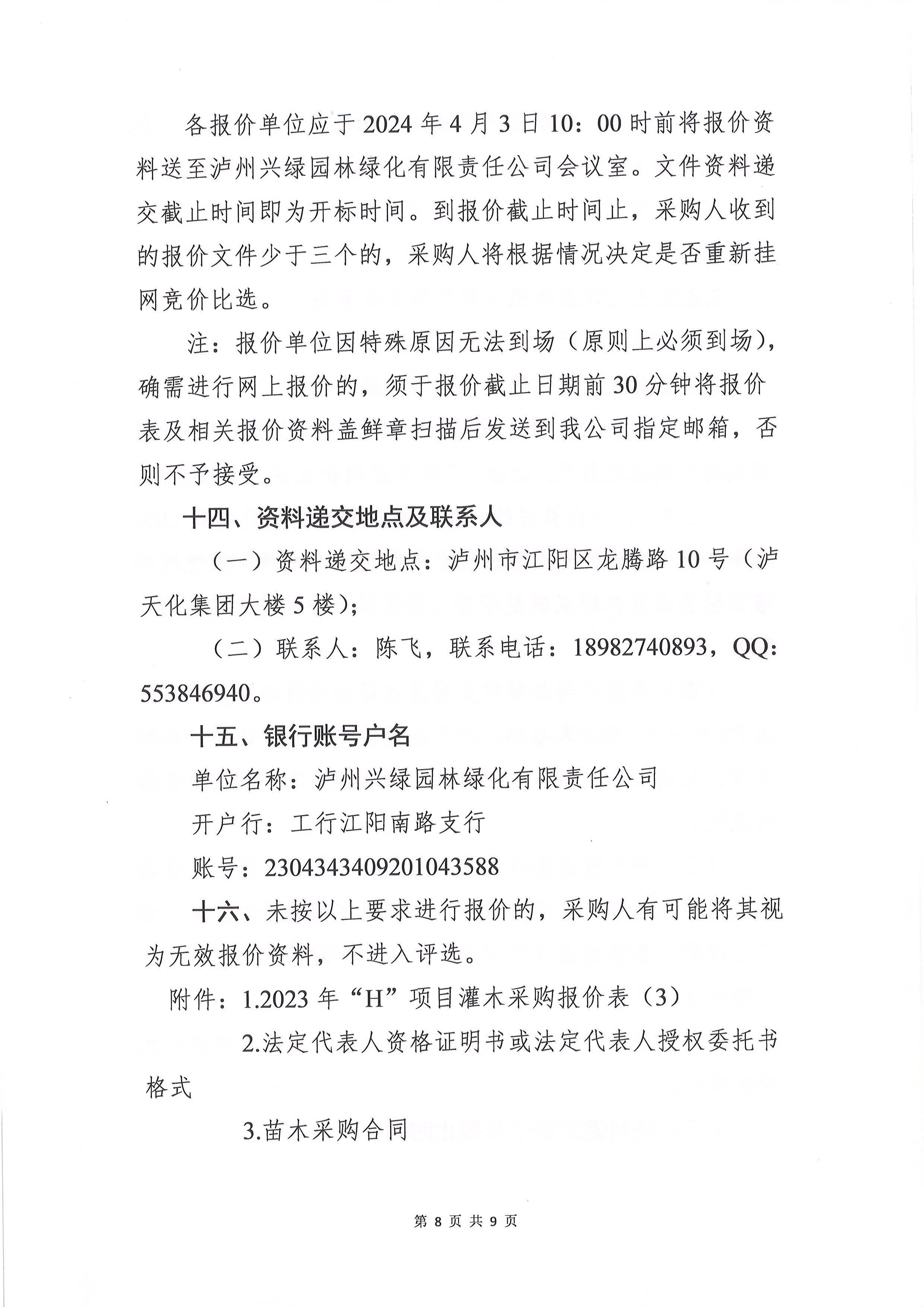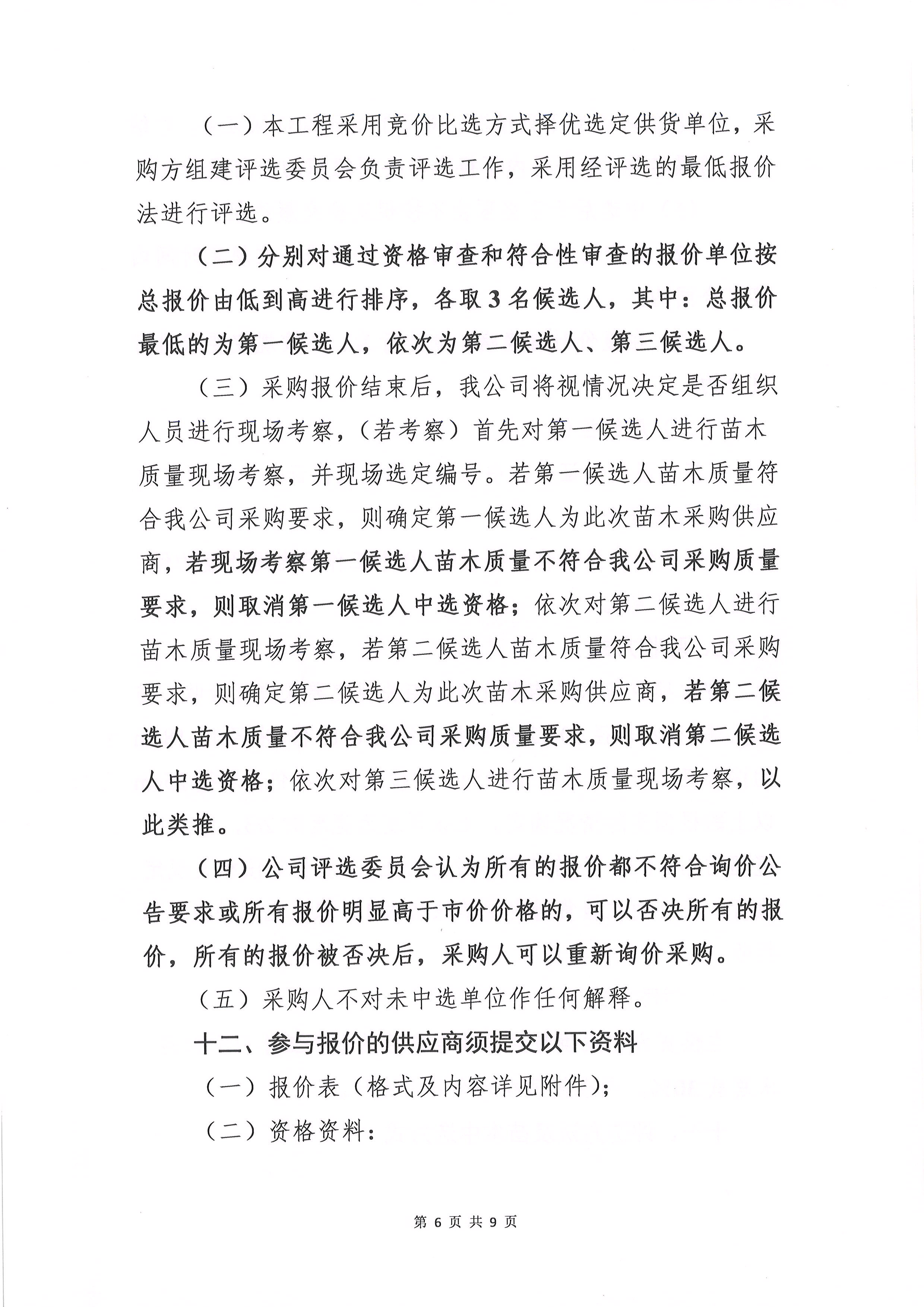 2023年“H”項(xiàng)目灌木采購詢價(jià)文件