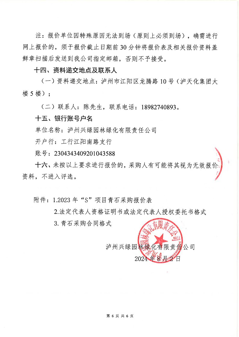 瀘州興綠園林綠化有限責(zé)任公司關(guān)于2023年“S”項(xiàng)目青石采購詢價(jià)公告