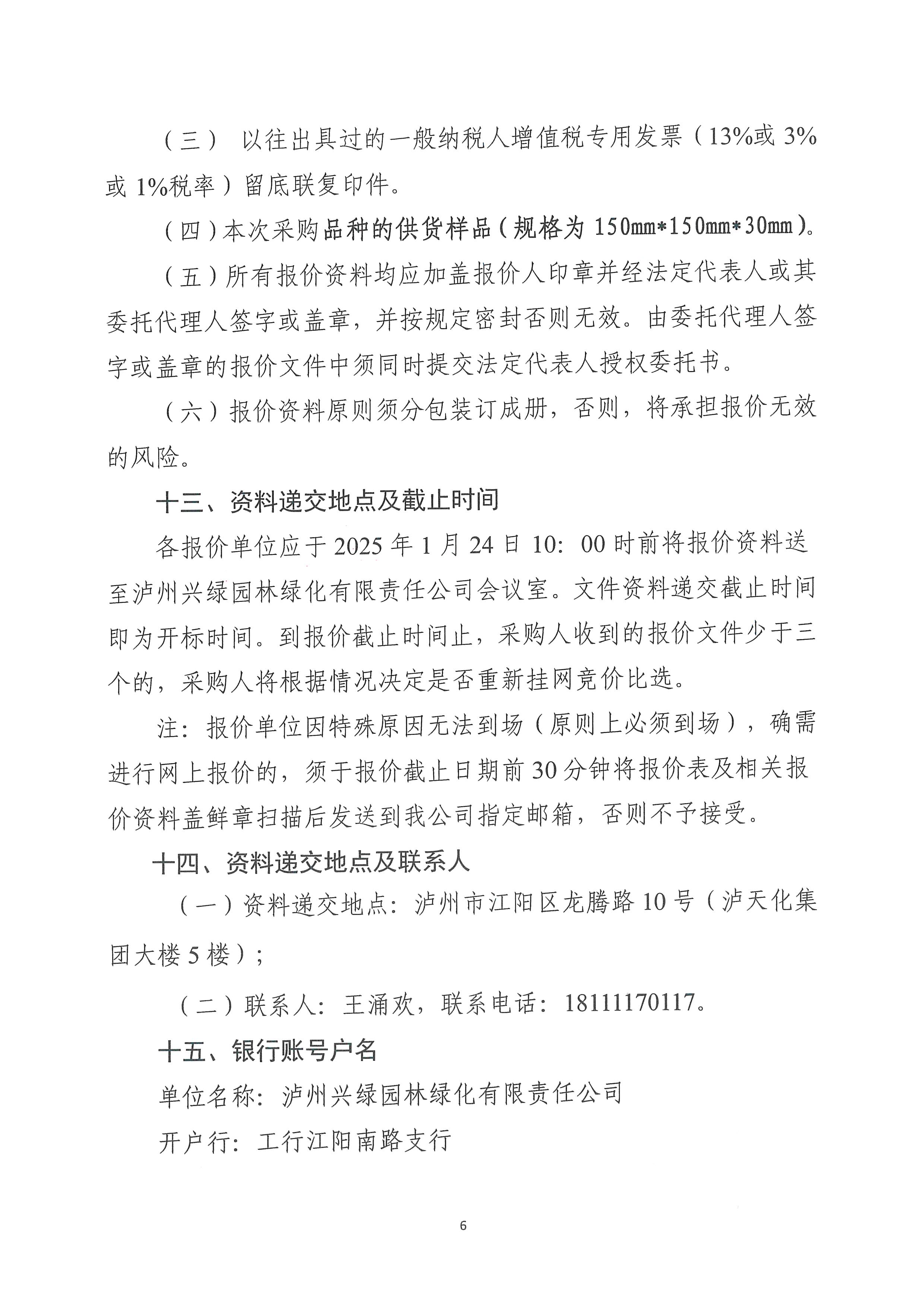瀘州興綠園林綠化有限責(zé)任公司關(guān)于2024年“A”項(xiàng)目花崗石采購詢價(jià)公告