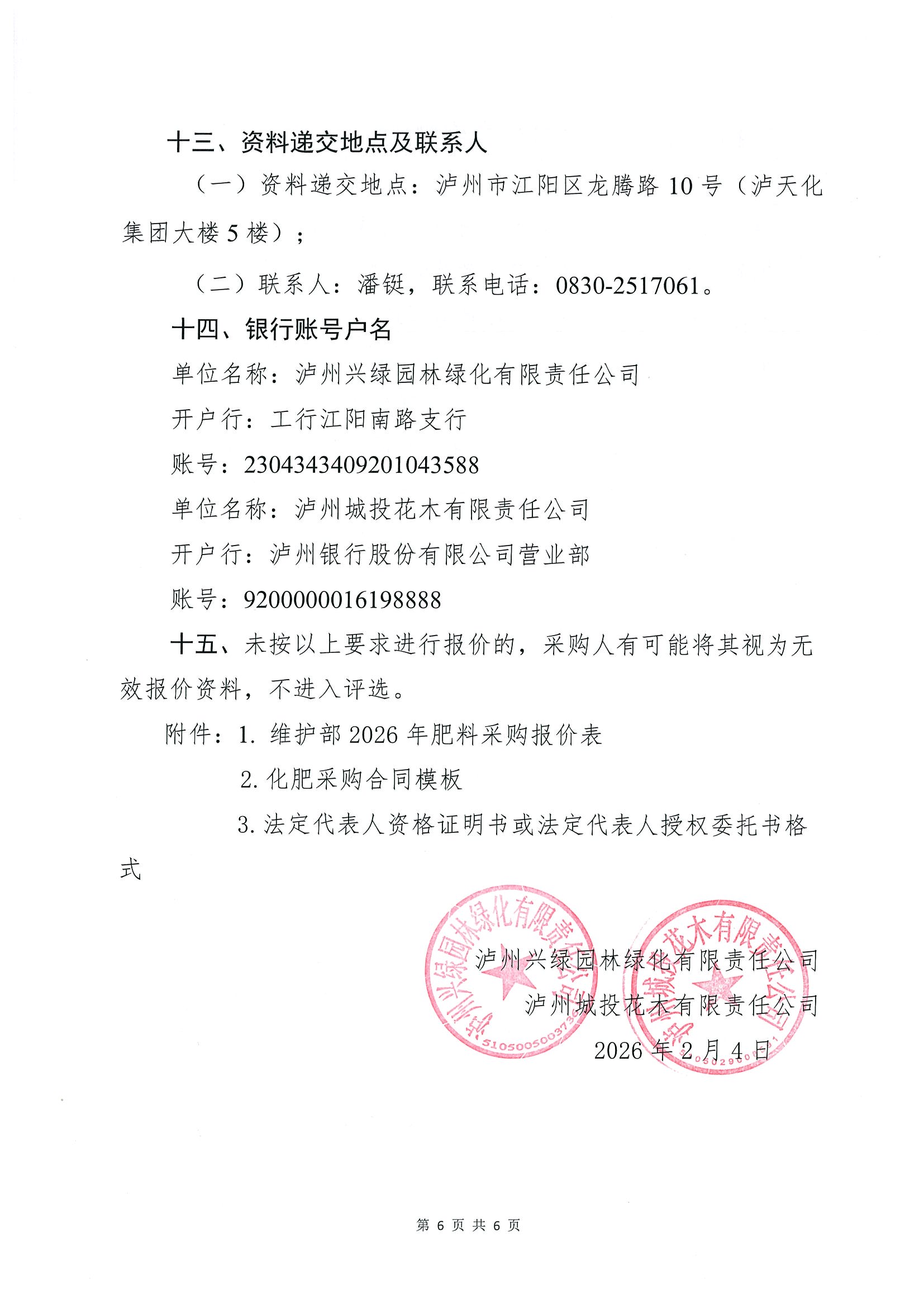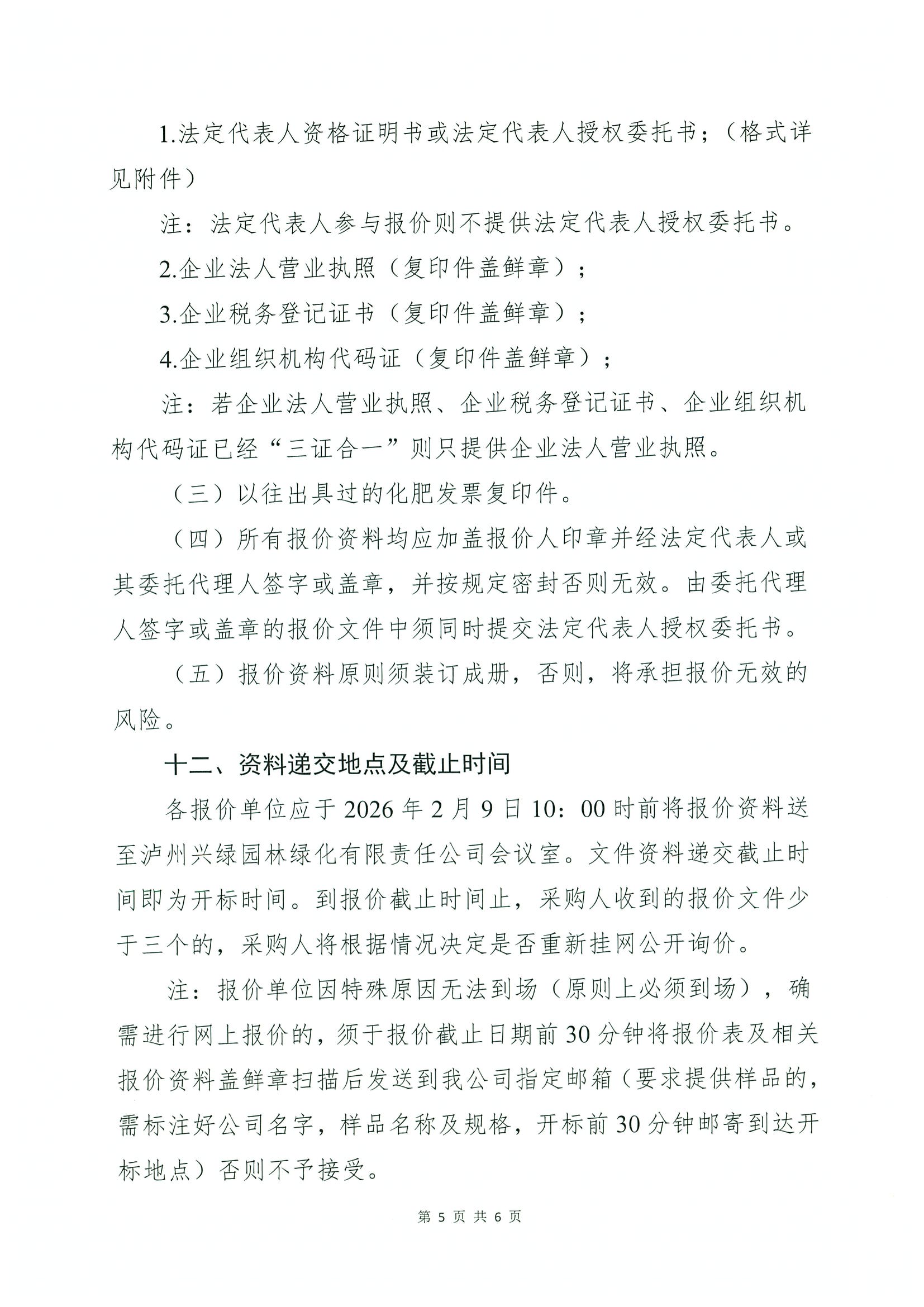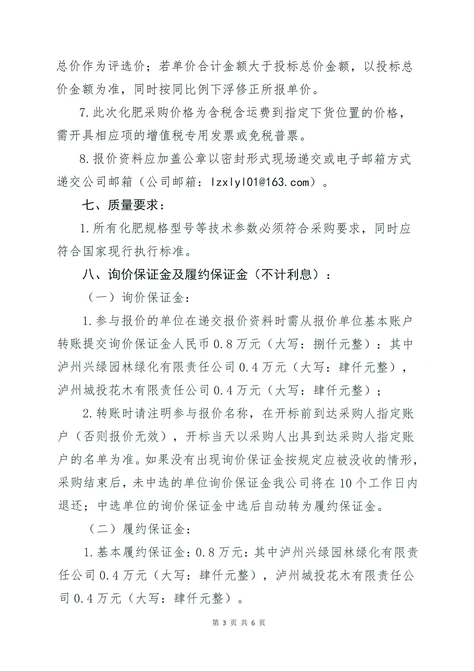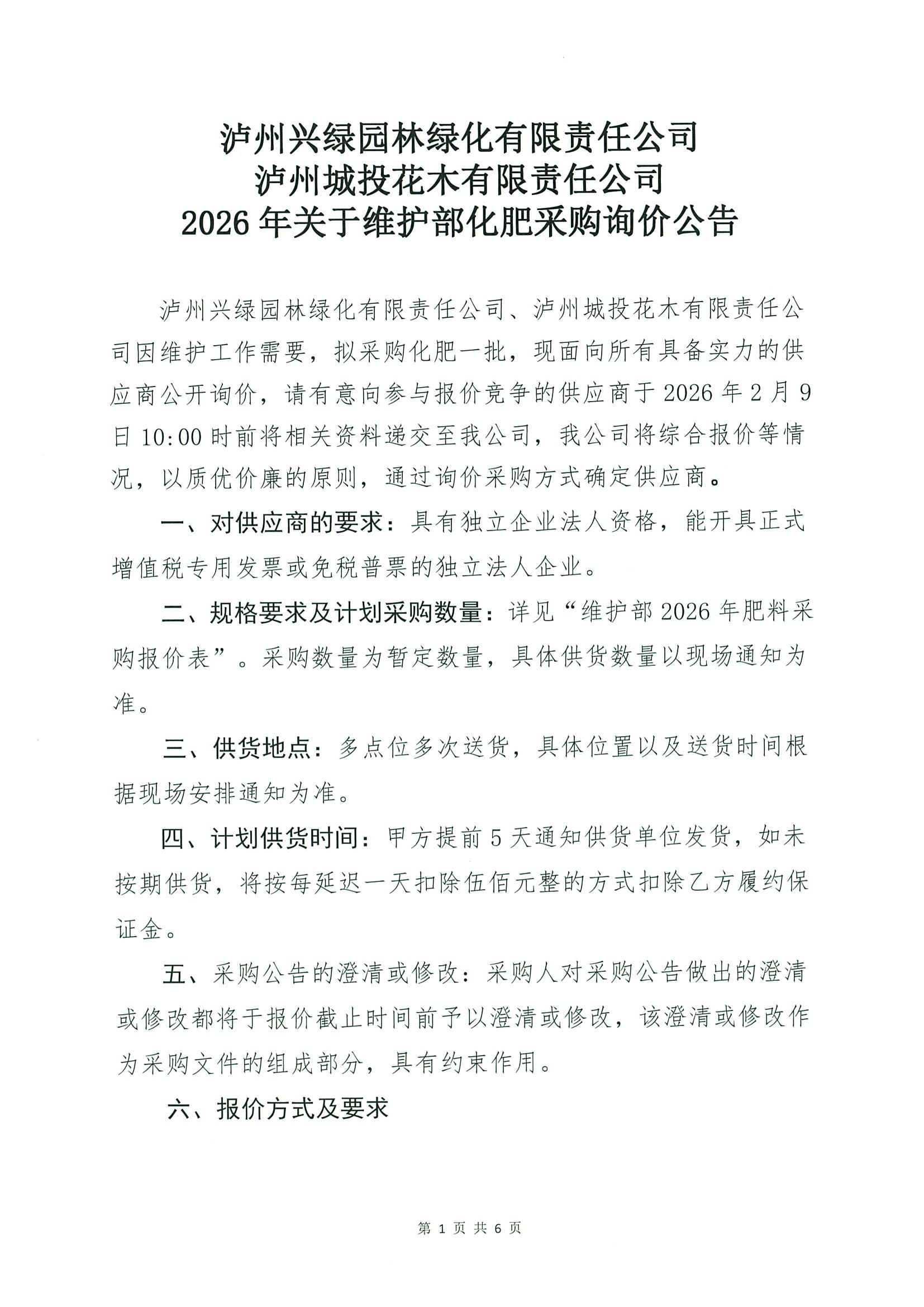 瀘州興綠園林綠化有限責(zé)任公司瀘州城投花木有限責(zé)任公司2026年關(guān)于維護(hù)部化肥采購(gòu)詢價(jià)公告